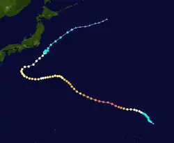 | Peak intensity | 260 km/h (160 mph) (1-min); 908 hPa (mbar) |