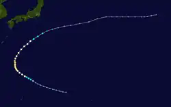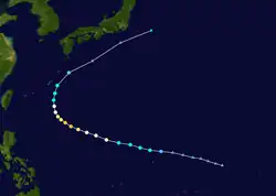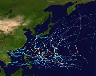 31 tropical depressions formed this year in the Western Pacific, of which 27 became tropical storms. 20 storms reached typhoon intensity, of which 4 reached super typhoon strength. No storms this season caused significant damage or deaths.