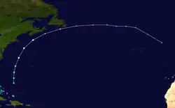 - ^ a b c d e f g h i j k l m n o p q r s t u v w x y z aa ab ac ad ae af ag ah ai aj ak al am an ao ap aq ar as at au av aw ax ay az ba bb bc "Atlantic hurricane best track (HURDAT version 2)" (Database). United States National Hurricane Center. May 11, 2024.