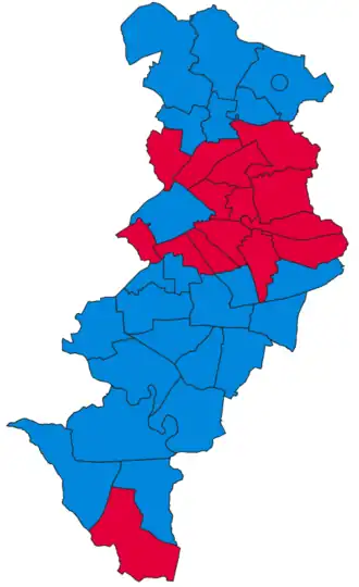 | Labour Party | 45,073 (35.5%) | 15 (38.5%) | 15 / 39