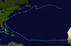 | Unnamed | September 30 – October 20 | Category 1 hurricane | 85 (140) | 989 | Lesser Antilles, Greater Antilles, Azores | $65.5 million | 22 | [6] | ||