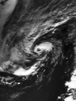On October 12, a subtropical depression developed while located northeast of the Bahamas. It steadily intensified and became a subtropical storm by the following day. After tracking east-northeastward, the storm made a sharp westward turned, followed by a curve to the north-northeast. After fully acquiring tropical characteristics, the subtropical storm transitioned into a tropical cyclone early on October 16. Twelve hours later, the storm strengthened into a hurricane,[3] shortly before passing near Bermuda.[51] It continued to intensify and briefly became a Category 2 hurricane on October 17. The hurricane then accelerated rapidly northeastward,[3] and made landfall on the Avalon Peninsula of Newfoundland as a Category 1 hurricane. Shortly thereafter, the hurricane transitioned into an extratropical cyclone on October 17.[3][52]