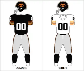 For the season, the Lions helmet had a special logo celebrating British Columbia's centennial. The Canadian Confederacy Centennial logo has three orange Cs linked with a small white Pacific dogwood flower at the centre.
