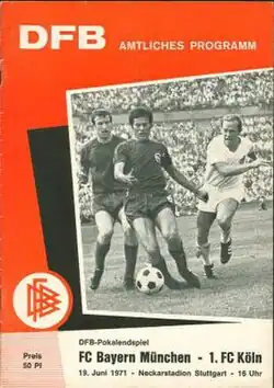 The 1971 DFB-Pokal Final decided the winner of the 1970–71 DFB-Pokal, the 28th season of Germany's knockout football cup competition. It was played on 19 June 1971 at the Neckarstadion in Stuttgart.[2] Bayern Munich won the match 2–1 after extra time against 1. FC Köln, to claim their 5th cup title.