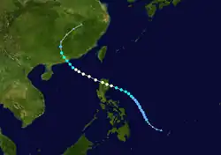 | Faye (Krising) | October 4 – 15 | Severe tropical storm | 985 hPa (29.09 inHg) | Philippines | Unknown | 13 | ||