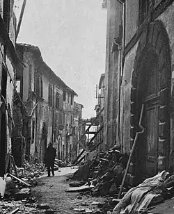 Despite being a moderately-sized earthquake, it caused major destruction. Between 24 and 33 people were killed, 150 were injured and about 5,000 were left homeless. Forty homes were destroyed and 1,678 were damaged, amounting to a total loss of $41 million (1971 rate). It was reported that the medieval section of Tuscania, a city of 8,000 inhabitants, was practically leveled, and 60 percent of the city's buildings were destroyed. Among those structures sustaining serious damage was the 8th century St. Peter's Church and the 12th century Basilica of St. Mary Major, both recently restored. The heavy damage sustained was due to the shallow depth of the earthquake and poorly constructed buildings.[4][3][7]