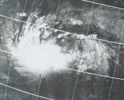 On October 16, the northern hemisphere component of a "cyclone twin" was classified by JTWC as a tropical depression while located near 7.0°N 179°W, just within the central Pacific basin.[5][16] After crossing the International Date Line, it intensified into Tropical Storm Olga of the 1972 Pacific typhoon season. After passing through the Marshalls as a tropical storm, Olga intensified into a typhoon on October 25. It then swung through part of the Northern Marianas Islands before it was absorbed by a front near Honshū on October 29. As the NMI had already been hit by Typhoon Marie three weeks earlier, little damage was reported.[5]