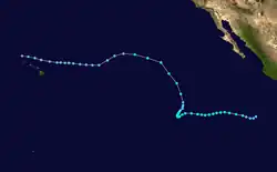 - ^ a b c d e f g h i j k l m n o p q r s t u v w x y z aa ab ac ad ae af National Hurricane Center; Hurricane Research Division; Central Pacific Hurricane Center (April 26, 2024). "The Northeast and North Central Pacific hurricane database 1949–2023". United States National Oceanic and Atmospheric Administration's National Weather Service. Archived from the original on May 29, 2024. A guide on how to read the database is available here.