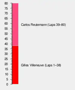 Reutemann cruised to the finish, maintaining a twelve to fifteen second gap over Andretti, who had a similar cushion over Patrick Depailler in third.