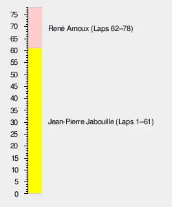 | 2 | 26 | Ligier-Ford | G | 78 | + 34.07 | 4 | 6 | |