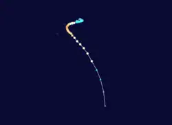 During the next day, Tomasi continued to intensify and move south-westwards, while the alert for Niue was upgraded to a gale warning.[23] Early on March 31, the NPMOC reported that the cyclone had peaked with 1-minute sustained winds of 185 km/h (115 mph), which made it equivalent to a Category 3 hurricane on the SSHWS.[24] Tomasi subsequently turned and started to move southwards, as it passed about 165 km (105 mi) to the east of Niue.[23][24] Later that day, the FMS reported that Tomasi had peaked as a Category 4 severe tropical cyclone, with 10-minute sustained winds of 185 km/h (115 mph).[24] During April 2, the system started to rapidly weaken, with its high clouds being sheared away, before it degenerated into a mid latitude depression.[23] Tomasi remnants moved towards the south-southeast, before it was last noted during April 5.[23][24] Some minor damage to vegetation was reported in Niue, as a result of Tomasi.[23]