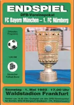 The 1982 DFB-Pokal Final decided the winner of the 1981–82 DFB-Pokal, the 39th season of Germany's knockout football cup competition. It was played on 1 May 1982 at the Waldstadion in Frankfurt.[2] Bayern Munich won the match 4–2 against 1. FC Nürnberg, to claim their 6th cup title.