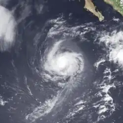The origins of Hurricane Ismael were from a northward bulge of the Intertropical Convergence Zone (ITCZ) in early August, which resulted in the formation of a tropical depression on August 8. Six hours later, it was upgraded into Tropical storm Ismael. Continuing to intensity, Ismael was upgraded into a hurricane late on August 10 and subsequently developed an eye. The storm soon reached its peak of 100 mph (155 km/h). Late on August 11, Hurricane Ismael began to weaken as it encountered cooler waters and the hurricane was soon downgraded to a Category 1 on the SSHWS. The following day, Ismael was downgraded into a tropical storm about 380 mi (610 km) west of the Baja California peninsula. On August 14, the storm was downgraded into a tropical depression while centered about 250 mi (400 km) west of Point Ensenada.[7] Ismael dissipated that day.[3]