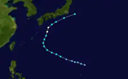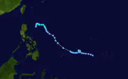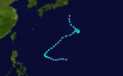- ^ A super typhoon is an unofficial category used by the Joint Typhoon Warning Center (JTWC) for a typhoon with winds of at least 240 km/h (150 mph).[3]