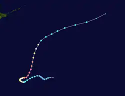 | Peak intensity | 150 km/h (90 mph) (10-min); 955 hPa (mbar) |
