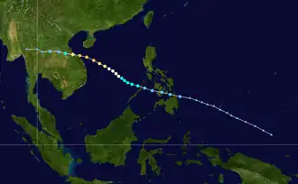 | Dot (Saling) | October 11–22 | Violent typhoon | 220 km/h (135 mph) | 895 hPa (26.43 inHg) | Caroline Islands, Mariana Islands, Philippines, South China, Vietnam | $68 million | 90 | |