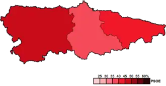![]() Constituency results map for the General Junta of the Principality of Asturias | |||||||||||||||||||||||||||||||||||||||||||||||||||||||||||||||||||||||||||||||||||||||||