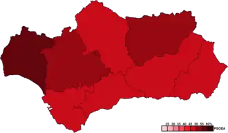 ![]() Constituency results map for the Parliament of Andalusia | |||||||||||||||||||||||||||||||||||||||||||||||||||||||||||||||||||||||||||||||||||||||||