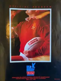 The 1990 Collegiate All–Star Championship took place in San Diego, CA from June 15–17.[9] Similar to the Inter Territorial Tournaments for club teams, the college competition is divided into geographic unions and used to select the All–American team that goes on to play other junior national rugby teams.[10] In the final, the Eastern RU defeated the Pacific RFU. The final standings were 1st East, 2nd Pacific, 3rd Midwest and 4th West.