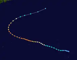 | Peak intensity | 155 km/h (100 mph) (10-min); 940 hPa (mbar) |