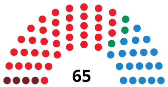 Voting for the Assembly was on the basis of universal suffrage, which comprised all nationals over 18 years of age, registered in Extremadura and in full enjoyment of their political rights. The 65 members of the Assembly of Extremadura were elected using the D'Hondt method and a closed list proportional representation, with an electoral threshold of five percent of valid votes—which included blank ballots—being applied in each constituency. Alternatively, parties failing to reach the threshold in one of the constituencies were also entitled to enter the seat distribution as long as they ran candidates in both districts and reached five percent regionally. Seats were allocated to constituencies, corresponding to the provinces of Badajoz and Cáceres, with each being allocated an initial minimum of 20 seats and the remaining 25 being distributed in proportion to their populations.[1][2]