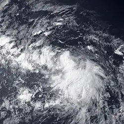 On May 16, the first tropical depression of the season formed to the southwest of Baja California, out of a tropical disturbance that had developed during May 5 within the vicinity of Panama.[3] During May 16 the depression gradually developed, before early the next day the National Hurricane Centre declared it a tropical storm and named it Andres.[3] The newly named tropical cyclone reached its peak intensity of 60 mph (95 km/h), later that day.[3] After maintaining its peak intensity for 24 hours, Andres started to gradually weaken as upper level windshear over the system increased before it dissipated during May 20.[3] Throughout its life as a tropical cyclone, Andres moved very little and slowly executed a cyclonic loop, while remaining well away from any land.[1][3]