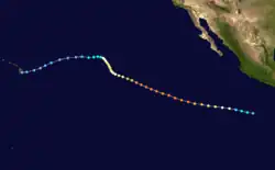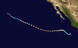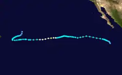 The 1992 Pacific hurricane season was the most active Pacific hurricane season on record, featuring 27 named storms. The season also produced the second-highest ACE value on record in the basin, only surpassed by the 2018 season. The 1992 season officially started on May 15 in the eastern Pacific, and on June 1 in the central Pacific, and lasted until November 30. These dates conventionally delimit the period of each year when most tropical cyclones form in the northeastern Pacific Ocean.[1] However, tropical cyclogenesis is possible at any time of the year, as demonstrated by the development of Hurricane Ekeka on January 28, and Tropical Storm Hali two months later.