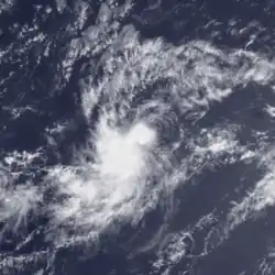 The first storm of the season developed from an area of disturbed weather near Kiritimati in the Line Islands. The tropical disturbance had been tracked since January 23, and at 06:00 UTC January 28, the Central Pacific Hurricane Center designated the system as Tropical Depression One-C. This was unusual, since the system was located well to the south of the area of normal tropical cyclone formation, further south than any other Pacific hurricane at the time, and the formation occurred well outside the climatological bounds of the hurricane season. The system intensified and reached tropical storm status 12 hours later, at which point it became known as Ekeka.[4]