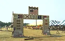 The 1993 National Scout Jamboree was divided into four regional encampments which consisted of a total of 19 sub-camps. Each subcamp consisted of approximately 1300 participants each dispersed among 30-40 troops. Each troop occupied a campsite with dimensions of approximately 90 feet (27 m) X 90 feet.[2] Each subcamp had a special patch depicting a historical flag.