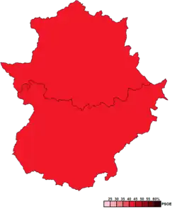 ![]() Constituency results map for the Assembly of Extremadura | |||||||||||||||||||||||||||||||||||||||||||||||||||||||||||||||||||||||||||||||||||||||||