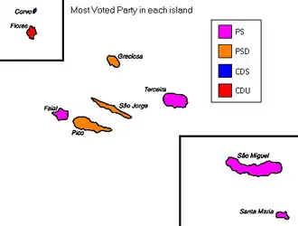 Map of Azores showing constituencies won