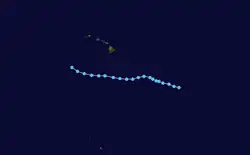 In the central Pacific, one tropical depression formed. In addition, a depression crossed the dateline from the western Pacific before dissipating in this basin. Neither of these systems reached tropical storm strength.[7] In addition, data from the Joint Typhoon Warning Center, on September 1 Tropical Depression Rick crossed the International Dateline, entering into CPHC's area of responsibility;[8] however, this storm was not included into CPHC database. The storm eventually became extratropical on September 3 over open waters.