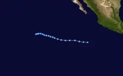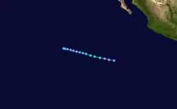 The season officially began on May 15 in Eastern Pacific and on June 1 in Central Pacific; both ended on November 30.[3] This season was below average in activity. In the eastern north Pacific, eleven tropical cyclones formed. Of these, four became hurricanes, one of which were major hurricanes because they reached Category 3 or higher on the Saffir-Simpson Hurricane Scale. The remainder were tropical storms.[4] In addition, one Atlantic hurricane, Cesar, crossed into the Pacific as a tropical storm, at which time it was renamed Douglas.[5] None of the systems in the eastern north Pacific crossed 140°W into the central Pacific. The last time that happened was in the 1979 season.[6]