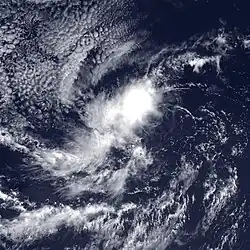 A tropical wave moved off the coast of western Africa into the Atlantic Ocean on August 29. It continued to move westward through the tropical waters of the Atlantic into the Caribbean. It still remained a tropical wave as it moved over Central America and began to acquire more convection and organization, from September 10 through September 11. Visible satellite imagery showed low level circulation and more organized deep convection as it became a tropical depression on September 17, while located about 475 miles (764 km) south-southeast of the southern tip of the Baja California Peninsula.[30]