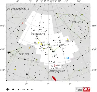 | TeV J2347+517, 2MASS J23470484+5142178, WISE J234704.83+514217.9, Gaia DR2 1945016660584494208[3] | |