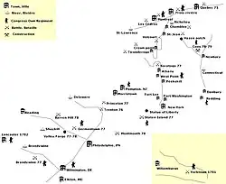 The 1st Canadian Regiment (1775–1781) was an Extra Continental regiment of the American Patriots' Continental Army, consisting primarily of volunteers from the Province of Quebec. The 1st was raised by James Livingston to support Patriot efforts in the American Revolutionary War during the invasion of Quebec. Livingston, who was born in New York and living in Quebec, recruited men from Chambly, Quebec as early as September 1775,[1] but a formal regimental designation was made by Richard Montgomery on November 20, 1775, with recognition by the Second Continental Congress following on January 8, 1776. The regiment, which never approached its authorized size of 1,000 men, saw action primarily in the Canadian theater and New York, and was disbanded on January 1, 1781, at King's Ferry, New York.