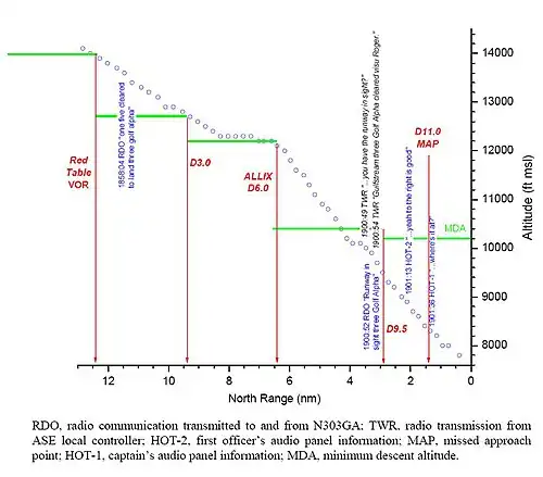 The subsequent investigation by the National Transportation Safety Board (NTSB) concluded that the cause of the accident was the captain's premature descent below the minimum descent altitude, carried out without having the runway in sight.[2]