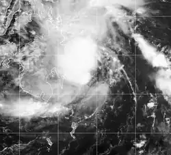 The season began early, but did not become active until June, when six storms passed near or over Japan after a ridge weakened.[10] Nine storms developed in July, many of which influenced the monsoon trough over the Philippines to produce heavy rainfall and deadly flooding.[12] The flooding was worst in Luzon, where 85 people were killed. The series of storms caused the widespread closure of schools and offices. Many roads were damaged, and the floods left about $1.8 million (₱94.2 million PHP)[nb 5] in crop damage, largely to rice and corn.[13] Overall damage from the series of storms was estimated at $10.3 million (₱522 million PHP).[14][nb 5] From June to September, heavy rainfall affected large portions of China, resulting in devastating flooding that killed over 1,500 people and left $8.2 billion (¥68 billion CNY) in damage.[15][nb 6] During this time, Tropical Storm Kammuri struck southern China with a large area of rainfall that damaged or destroyed 245,000 houses. There were 153 deaths related to the storm, mostly inland in Hunan,[17] and damage totaled $322 million (¥2.665 billion CNY).[18][nb 6] Activity shifted farther to the east after September, with Typhoon Higos striking Japan in October and Typhoon Pongsona hitting Guam in December.[10]