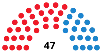 The 47 members of the Cortes of Castilla–La Mancha were elected using the D'Hondt method and a closed list proportional representation, with an electoral threshold of three percent of valid votes—which included blank ballots—being applied in each constituency. Additionally, the use of the D'Hondt method might result in an effective threshold over three percent, depending on the district magnitude.[3] Seats were allocated to constituencies, corresponding to the provinces of Albacete, Ciudad Real, Cuenca, Guadalajara and Toledo. Each constituency was allocated a fixed number of seats: 10 for Albacete, 11 for Ciudad Real, 8 for Cuenca, 7 for Guadalajara and 11 for Toledo.[2][4]