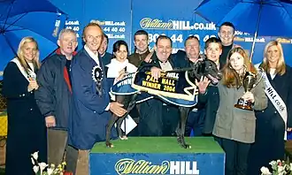 The 2003 English Greyhound Derby took place as usual with the final being held on 28 June. The final resulted in the disqualification of Droopys Hewitt, trained by Andy Iaonnou a first season trainer and former head man to Nick Savva. A sample taken by the stewards (the usual practice) was tested as positive and following a six-month court battle the National Greyhound Racing Club stewards finally prevailed and stripped the Derby title from Droopys Hewitt and awarded it to second place Farloe Verdict. The winner Farloe Verdict received £75,000 and the disgraced Iaonnou was banned from the sport.[3]