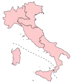 | North-West | Aosta Valley, Liguria, Lombardy, Piedmont | 23 |
