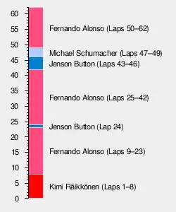 - ^ The podium ceremony was conducted with Jenson Button in 3rd place, prior to his disqualification.