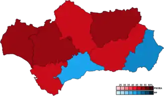 ![]() Constituency results map for the Parliament of Andalusia | |||||||||||||||||||||||||||||||||||||||||||||||||