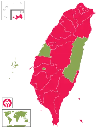 ![]() County-level units with Tsai Ing-wen leading. County-level units with Koo Kwang-ming leading. Area with no party office (Lienchiang County). | |||||||||||||||||
