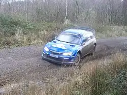 The 2008 Rally GB was the fifteenth and final round of the 2008 World Rally Championship season and was held between December 5–7, 2008. The event was again held in Wales, with Cardiff being the host of the ceremonial start and finish, and Swansea providing the service park. The special stages took place on gravel roads on private land, owned either by the Forestry Commission (for the special stages run on Friday and Sunday, and the Resolfen stage on Saturday) or the Army (for the remaining Saturday stages). The event saw a return to the mid Wales stages of Hafren, Sweet Lamb, and Myherin for the first time since 2000.[1] The rally was won by Sébastien Loeb in a Citroën C4 WRC. This was his eleventh win of the season - breaking his own previous record set in 2005. Second place went to Ford driver Jari-Matti Latvala who was just 12.7 seconds behind. The final podium position was filled by Loebs teammate Dani Sordo. With this result Citroën clinched the manufacturers championship. This was the final appearance of the Subaru and Suzuki rally teams in the World Rally Championship.