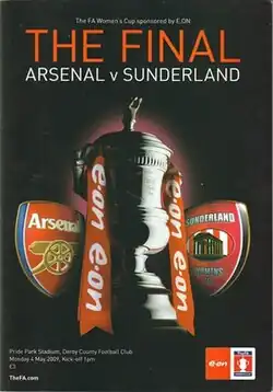 The 2009 FA Women's Cup Final was the 39th final of the FA Women's Cup, England's primary cup competition for women's football teams. It was the 16th final to be held under the direct control of the Football Association (FA). The final was contested between Arsenal and Sunderland at Pride Park Stadium in Derby on 4 May 2009. Arsenal won the game 2–1 to secure their fourth successive FA Cup triumph and their tenth in total. The match was attended by a crowd of 23,291.