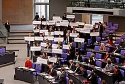 While initially downplayed by the German government which was busy in an election campaign at the time,[21] the airstrike then dominated political debates in Germany for several months and in November 2009 led to the resignation of German labor minister Franz Josef Jung, who was defense minister during the attack.[22] In early 2010, further material came to light, especially about the political handling in the German government, which brought further pressure on a number of people, including Karl-Theodor zu Guttenberg, the new defense minister. The major German newsweekly Der Spiegel, in an exhaustive research article published in February 2010, called the incident a war crime due to the fact that the attack on the tankers had broken a number of rules of conduct, and had led to a later cover-up.[21]