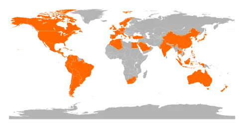 WHO Confirmed cases are now extant in four of six WHO regions (see map). As of 19:15 GMT seven countries have officially reported cases of swine influenza A(H1N1) infection.[48]