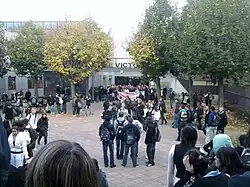 Students began to participate in the demonstrations during October, with 1 in every 15 schools in the country affected by the middle of the month.[6] Police fired rubber bullets in Montreuil, Seine-Saint-Denis, causing a 16-year-old student to nearly lose an eye, with other students reported to have also been injured.[7] Police sprayed tear gas on young protesters in Lyon, which was captured by television cameras.[7] Families and children came to the fore on the third day, the first occasion on which a demonstration occurred on a Saturday.[20]