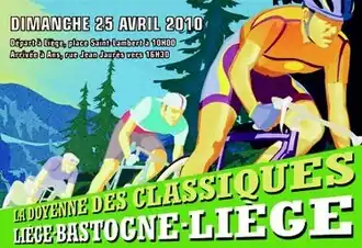 The 2010 Liège–Bastogne–Liège monument classic cycling race took place on April 25, 2010. This race was won by Alexander Vinokourov after slipping into a breakaway with Alexandr Kolobnev. Vinokourov attacked on the last hill with under 500m to go to take the victory.[1] Alejandro Valverde, the winner in 2006 and 2008, finished third in the race, but was stripped of the result as a result of a doping suspension applied on May 31, 2010.[2]